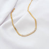 Colar em malha lacraia confeccionado em ouro 18k, adornado com zircônias baguete que conferem brilho e sofisticação. O design entrelaçado da malha proporciona flexibilidade e conforto ao corpo, enquanto o acabamento em ouro garante durabilidade e resistência ao desgaste. Peça versátil que combina elegância clássica com contemporaneidade, ideal para complementar tanto looks formais quanto do dia a dia. Zircônias de alta qualidade asseguram luminosidade duradoura.